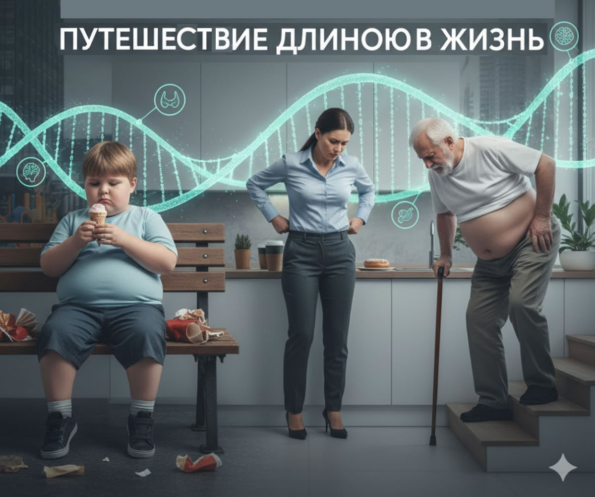 - Генетика и эпигенетика. Наследуемся не «обречённость», а предрасположенность: особенности аппетита, обмена веществ, распределения жира. Ранние воздействия (питание матери во время беременности, раннее вскармливание) тоже «настраивают» метаболизм.
